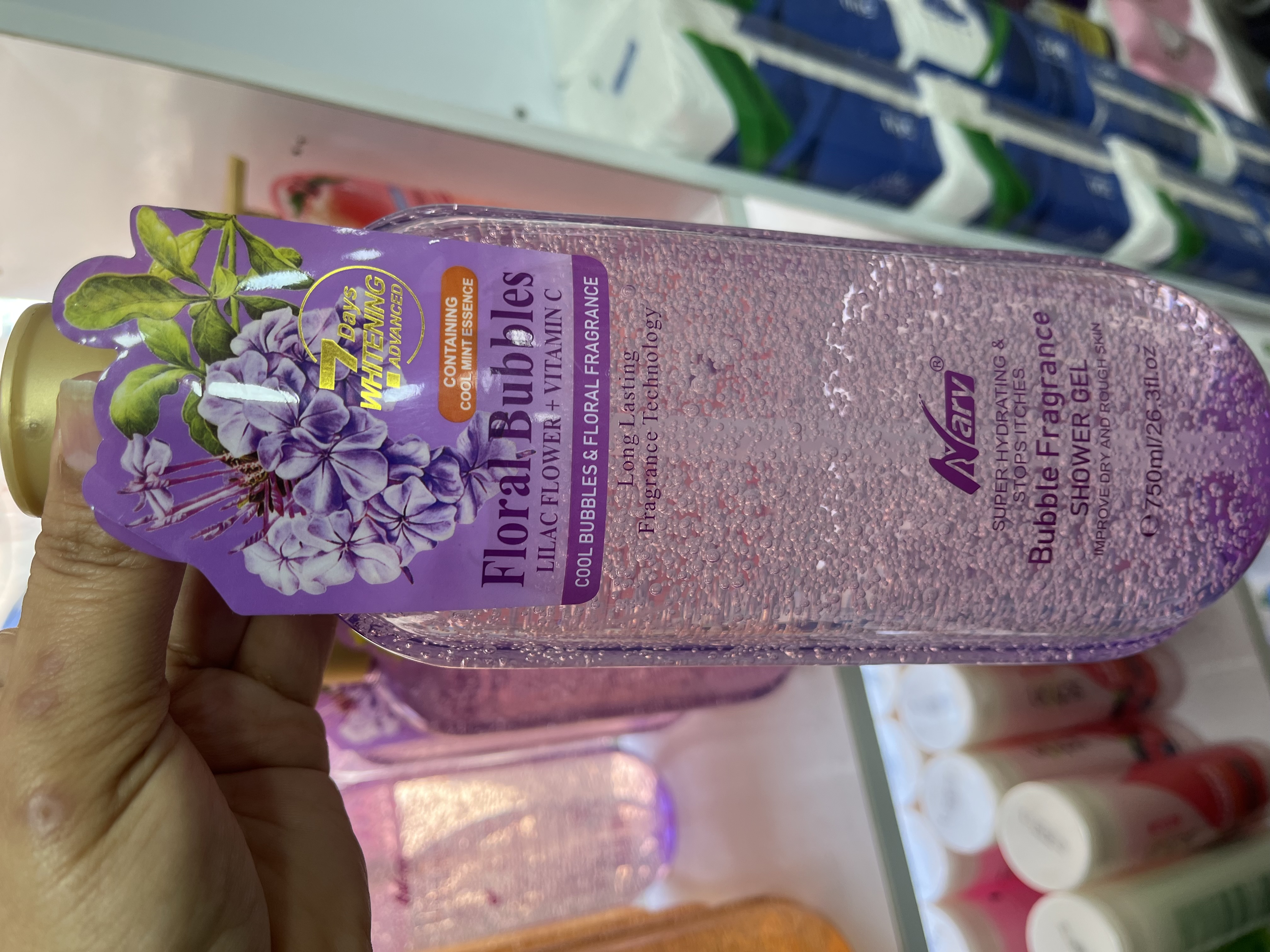 شامپو بدن روشنکننده و ضدخارش ناری (Nary) مدل گل یاس بنفش و ویتامین C حجم ۷۵۰ میل
